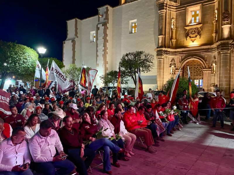 Candidatos de Morena y del PT, se reunieron en la plaza Hidalgo para observar el debate presidencial en el que participa Claudia Sheinbaum, Xóchitl, Gálvez y Jorge Alvarez.