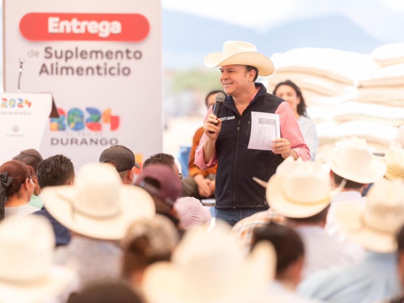 _Pánuco de Coronado, Dgo.-_ Con la construcción de 270 bordos de abrevadero, presas de mampostería y estrategias en conjunto con los ganaderos a favor de la economía de las familias, Durango estará listo para las lluvias, afirmó el gobernador Esteban Villegas Villarreal al llevar el “Plan Emergente Contra la Sequía” a Pánuco de Coronado y entregar apoyo de alimento para bovinos.