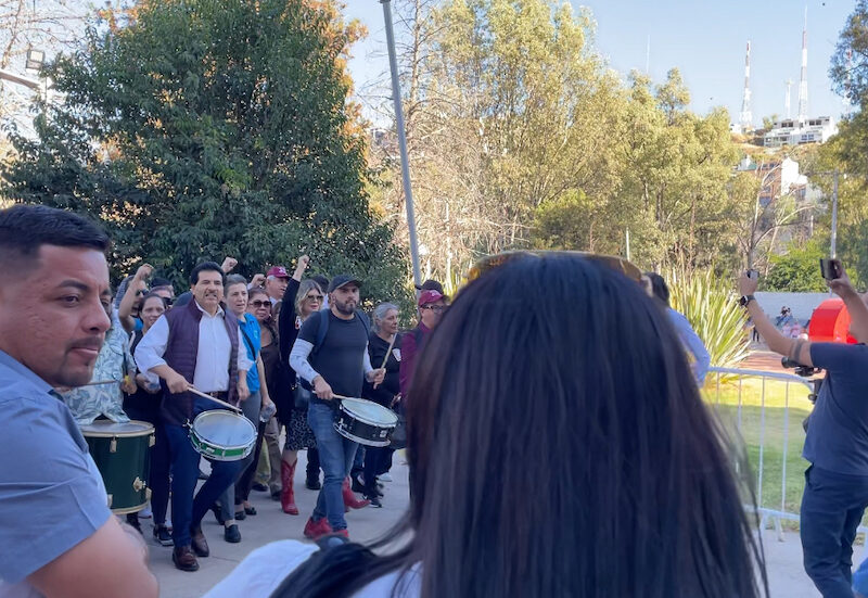 El más ruidoso sin duda fue el ex alcalde José Ramón Enríquez Herrera, quien llevaba una batucada y era acompañado por decenas de simpatizantes quienes corearon porras a favor del aspirante quien de es manera mostró músculo.