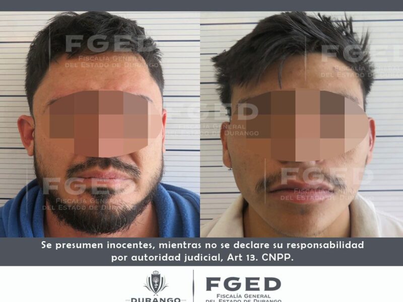 La Fiscalía General del Estado de Durango, a través de la Policía de Investigación, logró la detención de José Alfredo “N” y Edgar Manuel “N”, presuntamente involucrados en el lanzamiento de un explosivo casero, y en la venta ilegal de terrenos del ejido Cristobal Colón.