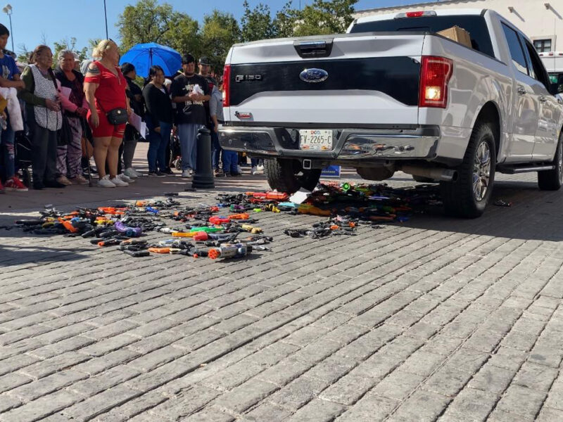 La Alianza Ciudadana por Durango lleva desde hace 15 años realizando intercambios de armas de juguetes por otros como lo pueden ser muñecas o carritos para agregar su granito de ayuda y evitar la violencia. El día de hoy intercambiaron hasta 500 armas de juguete en la Plaza IV Centenario.