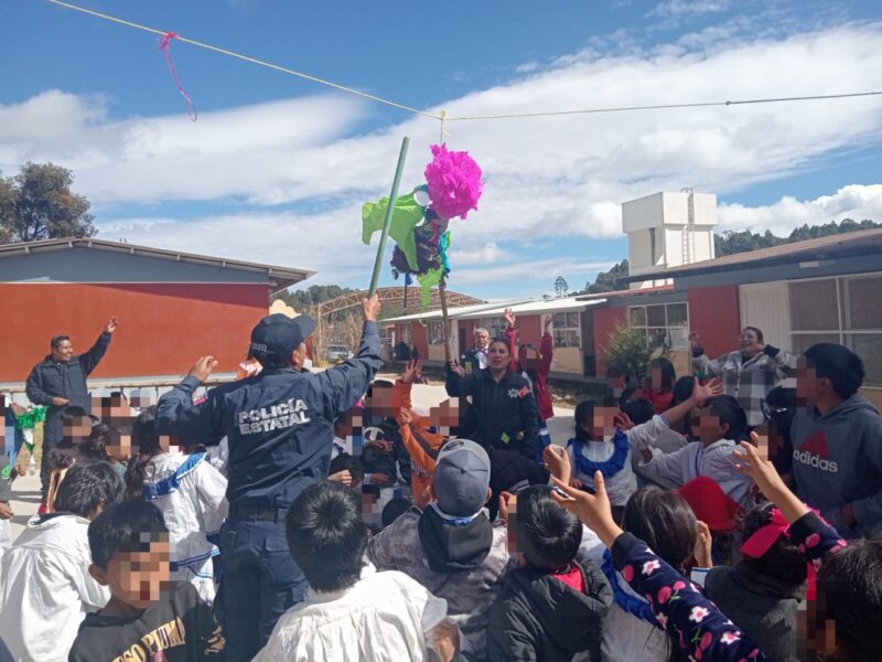 Con motivo de la temporada navideña, oficiales de la Policía Estatal con sus propios recursos regalan momentos de alegría a niños y niñas indígenas,ofreciéndoles una fiesta decembrina, en la escuela Primaria Indígena Vicente Guerrero en el Municipio del Mezquital, Durango.