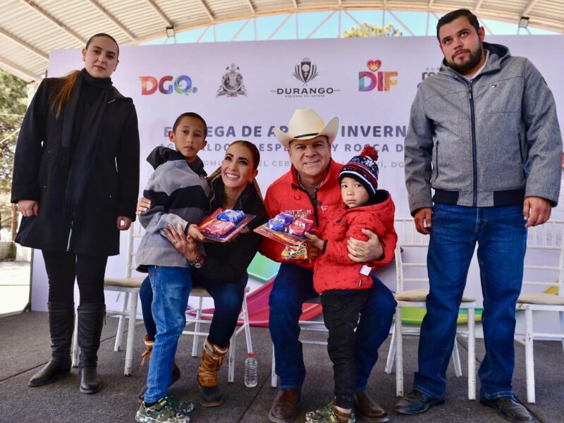 El gobernador Esteban Villegas Villarreal y su esposa, Marisol Rosso, visitaron comunidades apartadas del norte del estado, como El Cebollín y Arroyo de Lajas, en Guanaceví, para entregar apoyos invernales, paquetes alimentarios y regalos para niñas y niños. En su recorrido, también llevaron implementos médicos y compartieron la tradicional rosca de Reyes con las familias.