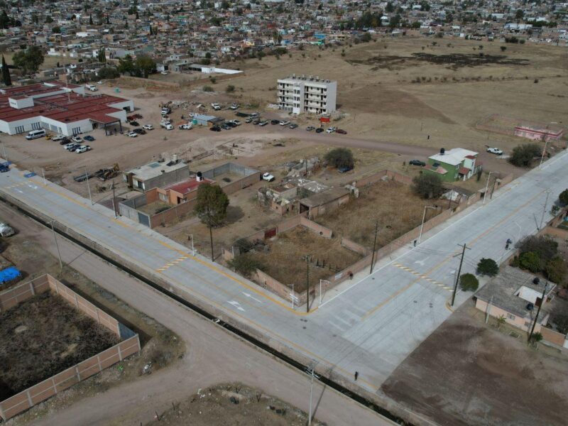 La pavimentación de las calles La Llave y Primero de Mayo, en la colonia Isabel Almanza, mejora la conectividad de la zona oriente de Durango y el acceso al nuevo Hospital Municipal del Niño 460.