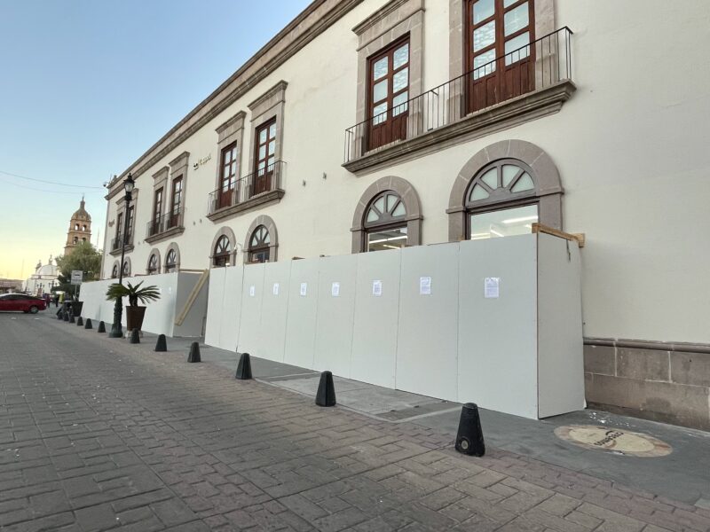 Desde este martes la tienda Coppel que se encuentra en la calle 5 de febrero y constitución en la ciudad de Durango levantó unos muros de madera para proteger su edificio ya que hace un año una de las empleadas fue asesinada en los baños, aunque el feminicida fue detenido y sentenciado un grupo de mujeres quemaron y vandalizaron el edificio .