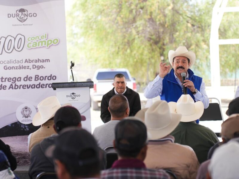Para garantizar el suministro de agua potable y apoyar a los productores locales, el Gobierno Municipal de Durango instaló paneles solares en el pozo del poblado Abraham González y entregó un bordo de abrevadero para la captación de agua de lluvia.