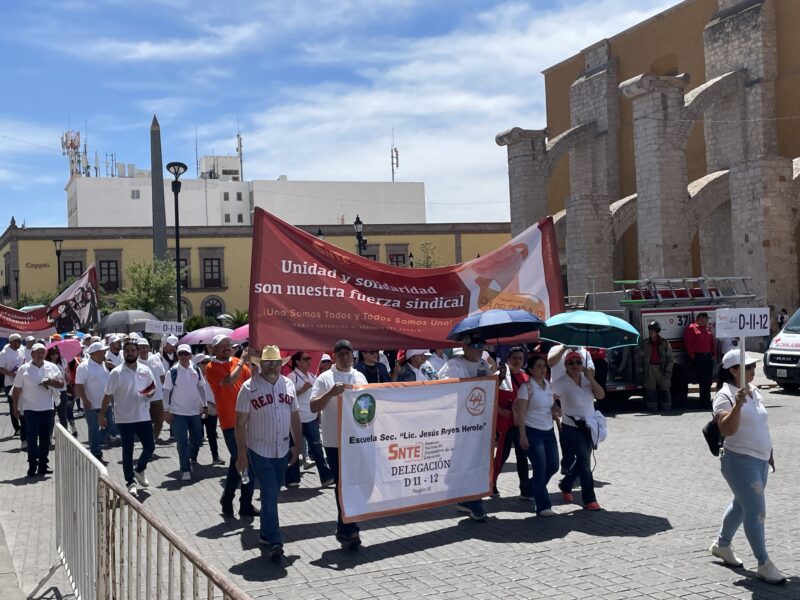 Al menos 5 mil maestros marcharon este 1 de mayo en el desfile del día del trabajo.