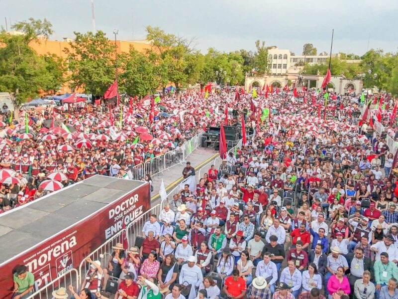 Enríquez Herrera estuvo el domingo en una abarrotada plaza cuartos centenario con la Lideresa nacional, María Luisa Alcalde, así como con el secretario de organización, Andres López Beltrán, hijo del expresidente, Andrés Manuel López Obrador.