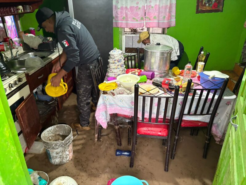 Elementos de la Dirección Municipal de Seguridad Pública, a través del Mando Único, brindaron apoyo a familias cuyas viviendas resultaron inundadas en el municipio de San Bernardo, tras las fuertes lluvias registradas recientemente.