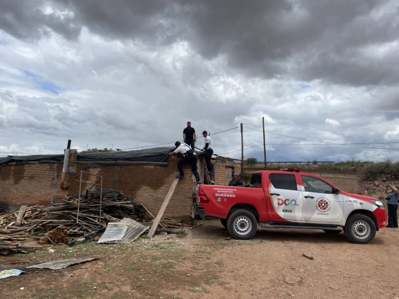 Este miércoles la señora Hortencia se comunicó con Durangos21 para solitar ayuda para proteger con hule la casa ya que sus hijos están chicos y tenían miedo de que se les enfermaran, Arturo Galindo, Coordinador de Protección Civil al conocer el caso inmediatamente mandó a sus elementos a proteger la vivienda