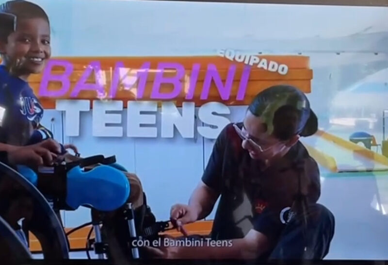 “Entregamos el bambini Teens, es un esqueleto robótico, ahorita estamos viendo algunas imágenes para que ustedes se puedan dar una idea y no dimensionas cómo te puede cambiar la vida en la rehabilitación de nuestras niñas y niños “