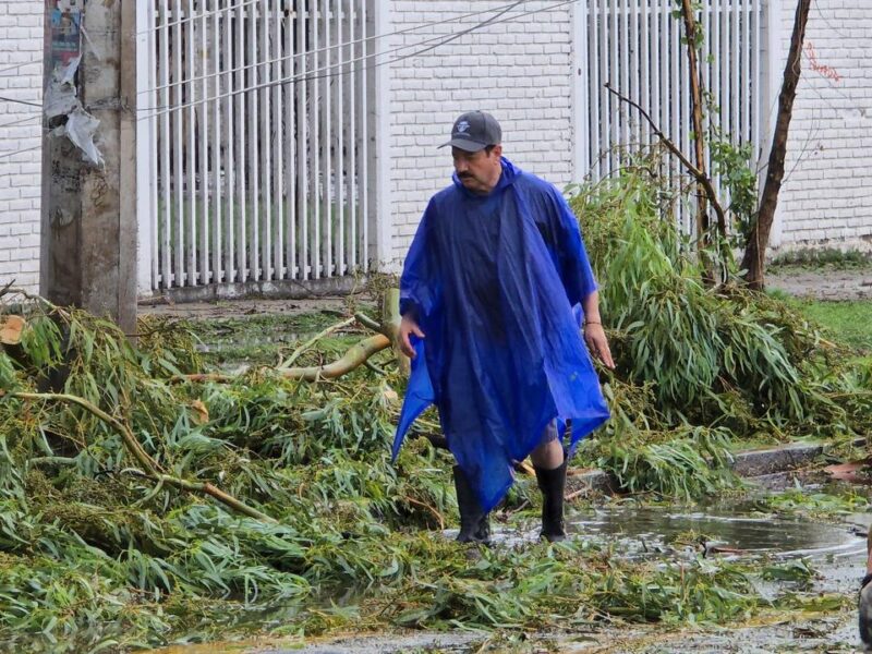 Los trabajos de auxilio se desplegaron en distintos puntos de la ciudad para atender reportes ciudadanos y prevenir mayores riesgos. En el CBTis 130, uno de los planteles afectados, el presidente municipal Bonifacio Herrera Rivera se sumó a las labores de retiro de árboles caídos.