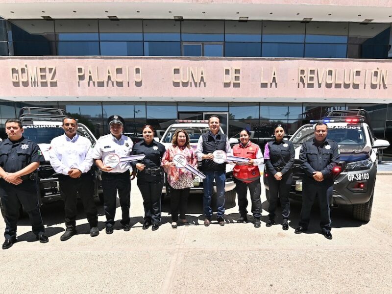 "Ingreso Trimestral Promedio de 69 Mil 589 en Durango en 2024: ENIGH"El Gobierno del Estado y el Municipio de Gómez Palacio entregaron cuatro patrullas a la Dirección de Seguridad Pública y una unidad de rescate a Protección Civil, con el objetivo de mejorar la capacidad de respuesta ante emergencias y fortalecer la seguridad en la región. El equipamiento beneficiará directamente a las corporaciones locales, permitiéndoles actuar con mayor rapidez y eficacia. Jorge Manuel Murga Torres, representante de los elementos operativos, señaló que estas unidades facilitarán las…