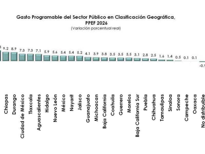 El Proyecto de Presupuestos de Egresos de la Federación para el 2026, contempla un incremento del 8.9% en el gasto programable del sector público para el estado de Durango, lo que coloca a la entidad como la séptima más beneficiada porcentualmente en el país. De acuerdo con el Centro de estudio de las Finanzas Públicas de la Cámara de Diputados, según la propuesta del Proyecto de Presupuesto de Egresos de la Federación, Durango recibiría en…