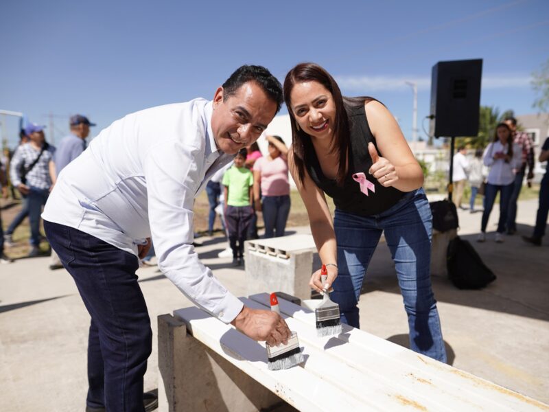 La unidad deportiva de Villas del Guadiana VI fue rehabilitada como parte del programa “Enchulando mi barrio”, con el que el Gobierno Municipal y los vecinos rescatan espacios públicos para el deporte, la cultura y la convivencia familiar.