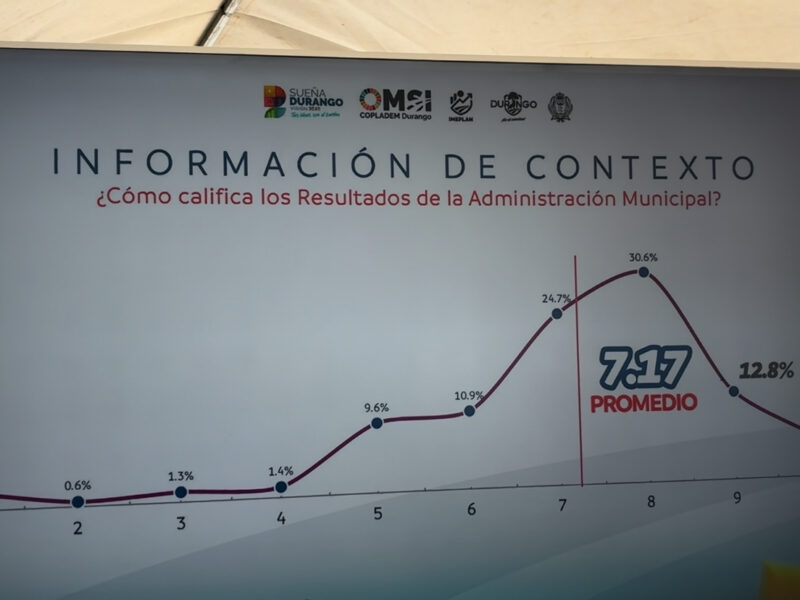 El Instituto Municipal de Planeación (IMPLAN) presentó los resultados de su encuesta sobre la percepción ciudadana del gobierno municipal de Durango, en la que los habitantes otorgaron una calificación promedio de 7.17 a la administración encabezada por el alcalde Antonio Ochoa. Entre los servicios mejor evaluados se encuentran el Cuerpo de Bomberos, el Hospital del Niño y la recolección de basura, mientras que otros rubros tendrán que reforzarse durante los próximos años. Tras conocer los…