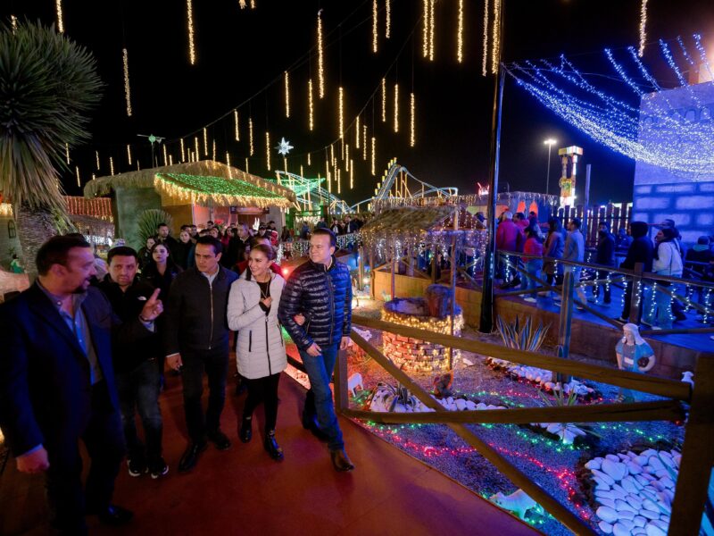 Durante la inauguración, el gobernador Esteban Villegas Villarreal recorrió los espacios navideños junto a su esposa Marisol Rosso Rivera y el alcalde capitalino Toño Ochoa.En el acto también estuvo presente el director de Ferias y Espectáculos, Lauro Arce Gallegos.