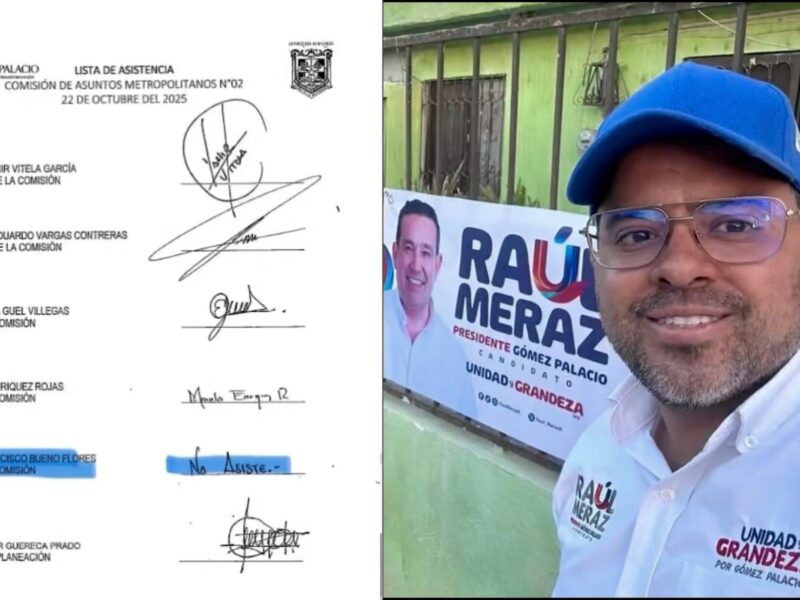 De acuerdo con una investigación publicada por Durangos21, el edil en Gómez Palacio suma nueve inasistencias a comisiones, lo que lo coloca como el regidor con más faltas dentro del Ayuntamiento.