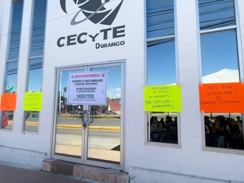 "No se Permitirá que Patrullas Circulen con Vidrios Polarizados ni Placas"El sindicato del Colegio de Estudios Científicos y Tecnológicos del Estado de Durango (CECYTE) levantó la huelga y reanudó actividades luego de alcanzar un acuerdo con el Gobierno del Estado para el pago de prestaciones pendientes. El movimiento inició debido al retraso en el pago de diversas prestaciones a docentes, situación que, de acuerdo con el sindicato, se originó por la falta de envío de recursos por parte del Gobierno Federal. Tras una mesa de…