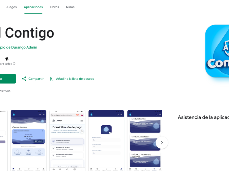 "AMD omite publicar 10 contratos por más de 6.6 millones en la Plataforma de Transparencia"Aguas del Municipio de Durango lanzó la aplicación “AMD Contigo” en tiendas digitales, la cual registró mil 500 descargas en sus primeros dos días de disponibilidad. La herramienta ya se encuentra en App Store y Google Play Store, y permitirá a los usuarios domiciliar el pago del servicio de agua, así como acceder a distintas funciones relacionadas con el suministro. El director del organismo, Jesús González Smith, informó que la aplicación se irá actualizando de…