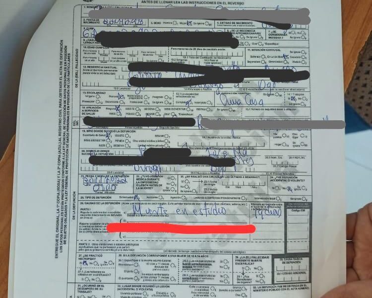 "Atendió Registro Civil Mil 300 Registros Extemporáneos en Región Indígena: Ortega"Miguel Ángel Yáñez, quien perdió a su esposa por meningitis micótica dijo que el acta de defunción que le fue entregada no consigna como causa de muerte dicha enfermedad, y la autoridad le ha comentado que posteriormente se podrá hacer la corrección. El viudo aseguró que si tiene dudas de que el acta de defunción al no consignar como causa de muerte la meningitis pueda tener problemas en la denuncia que interpuso ante la Fiscalía…