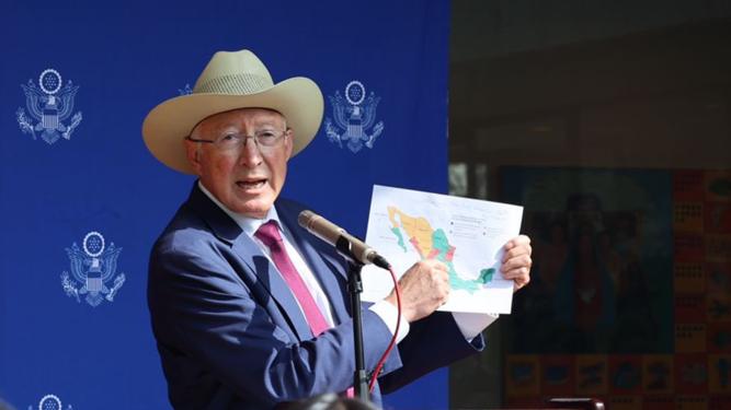 Ken Salazar, embajador de Estados Unidos en México mostró este jueves un mapa en donde el territorio duranguense muestra un color amarillo, lo que coloca a la entidad como un estado con riesgos de inseguridad. Entre el miércoles y el jueves, el embajador de Estados Unidos manifestó preocupación por la inseguridad persistente en estados del país, entre los cuales destaco a Sinaloa, Tamaulipas, Colima, Michoacán, Guerrero y Zacatecas, los cuales se encuentran en rojo debido…