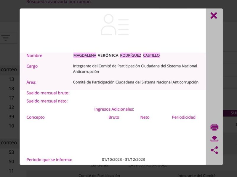 El sueldo que percibe la presidenta nacional del sistema anticorrupción no aparece en la Plataforma Nacional de Transparencia en el rubro de sueldos, aunque según Magdalena Rodríguez Castillo, su información ha sido entregada a dicha instancia. Con un sueldo bruto de poco más de 120 mil pesos, que quedan tras deducciones en poco más de 80 mil pesos, Rodríguez Castillo aseguró que cumple con los requerimientos que tiene como sujeto obligado, aunque dijo desconocer por…