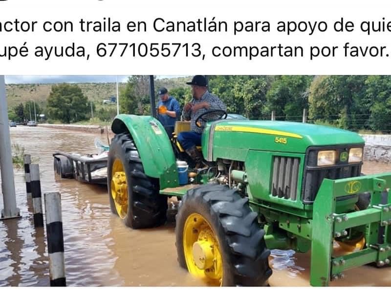 "Perece Familia al Intentar Cruzar Arroyo Crecido"La mitad de la población de Canatlán está afectada por las fuertes lluvias que se han registrado en las últimas horas, por lo que la solidaridad de los que están menos afectados no se hizo esperar. En sus cuentas de Facebook ofrecen tractor para sacar de las zonas inundadas a las personas que así lo soliciten, dejan número de teléfono para que se contacten, y también han entregado tortas a las familias afectadas, además de…