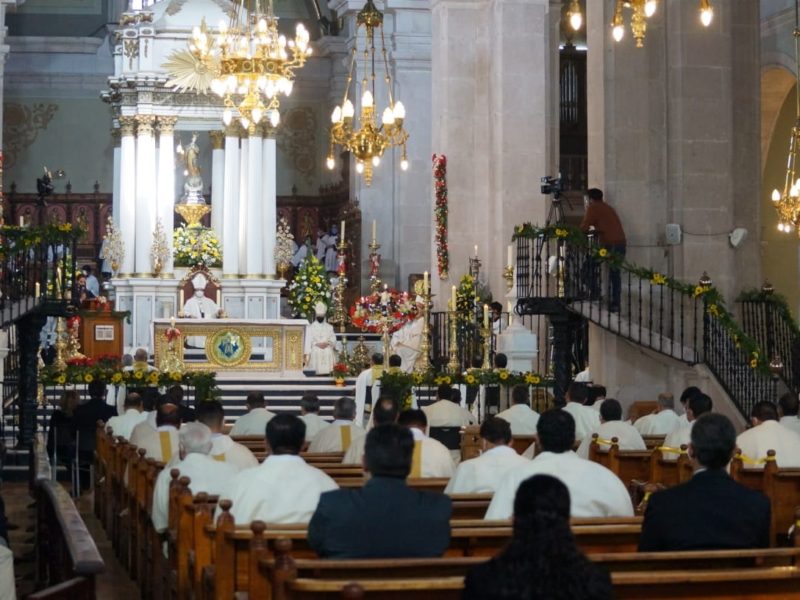 "Impide INAH Eliminar Pintas en la Catedral de la Marcha Feminista: Arzobispo."El Arzobispo de Durango, Faustino Armendáriz Jiménez recibió el palio arzobispal en una ceremonia realizada en la catedral de Durango cuya celebración fue encabezada por el Nuncio Apostólico, Franco Coppola. La ceremonia fue realizada alrededor de las 12:00 horas de este lunes 14 de diciembre, luego de que el pasado 21 de noviembre del año pasado, el Arzobispo Armendáriz Jiménez asumió como el nuevo líder de la Iglesia Católica en la Arquidiócesis de Durango. En…