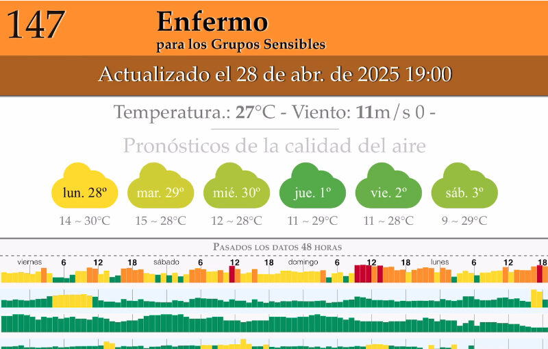 "Sufre Durango Mala Calidad del Aire con 147 Puntos"La calidad del aire en Durango nuevamente estuvo en semáforo púrpura, al alcanzar 208 puntos, producto presumiblemente de los incendios forestales activos que existen en el territorio duranguense. De acuerdo a los datos del Instituto Nacional de Ecología y Cambio Climático, la entidad volvió a colocarse en una calidad de aire, qué es catalogada como muy dañina a la salud, y que puede afectar a niños y adultos con enfermedades respiratorias, tales como el asma.…