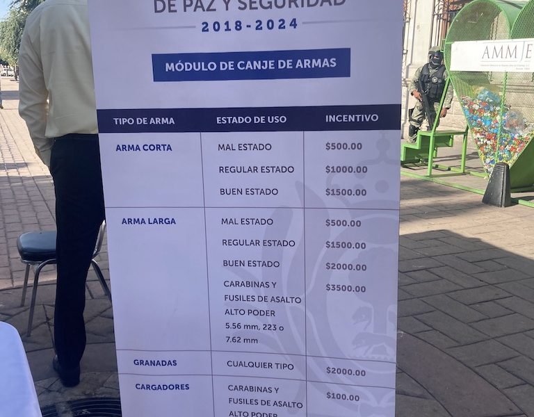 El centro de canje instalado por la Secretaría de la Defensa Nacional a partir de este lunes, sólo ha recibido un arma corta, calibre 22, según informaron los encargados del módulo colocado en la plaza de armas. Los militares invitaron a la población a acudir al módulo de canje, en donde pueden obtener recursos con la entrega de arma de fuego ya sea que estén en buenas condiciones o incluso en desuso, pues así…