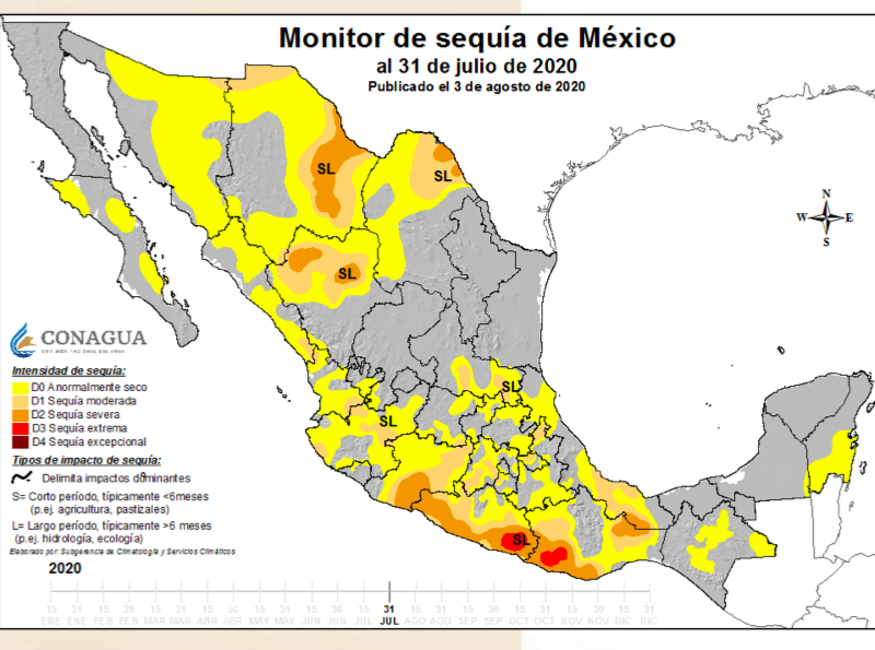 "Gobierno Federal Invertirá en Durango en el Sexenio 7 Mil 300 MDP en Agua: Morales"No obstante a las fuertes precipitaciones pluviales que se registraron a fines del mes de julio, hasta 25 municipios duranguenses padecen sequía y de estos 11 tienen sequía severa, según el Monitor de Sequía de México, elaborado por la Comisión Nacional del Agua. Al cierre del mes de julio, el 65 por ciento del territorio duranguense es catalogado por el citado documentado en sequía, ello pese a las intensas lluvias que se registraron a raíz…