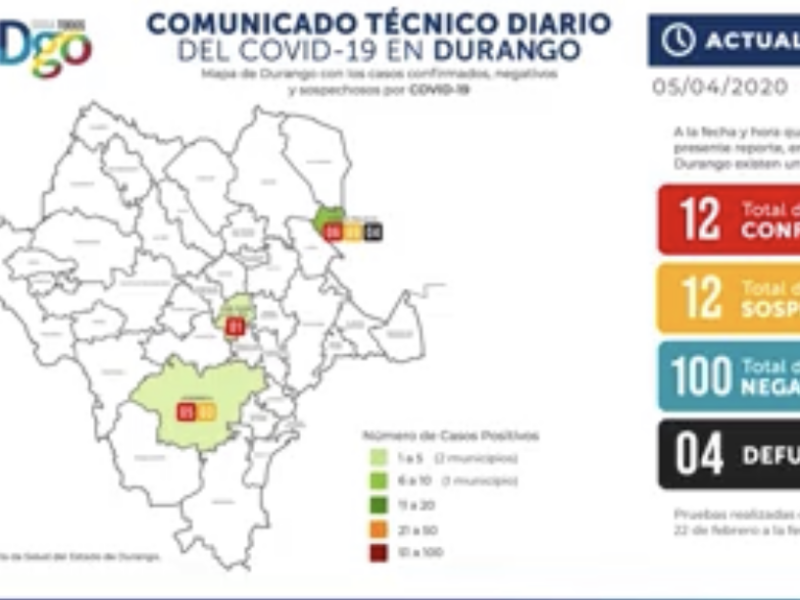 "Llama Maturino a Quedarse en Casa, para Evitar Incremento en Curva de Incidencia de Covid-19. "El caso número 12 de Covid-19 en Durango corresponde a un joven de 27 años, detectado en la Unidad de Medicina Familiar número 53 del IMSS en Gómez Palacio, precisó Sergio González Romero, Secretario de Salud. El joven que no reportó haber realizado algún viaje antes de resultar positivo, presentó síntomas desde el 23 de marzo, pero acudió a la clínica el 30 de marzo para recibir atención médica, y según el Secretario trabaja como…