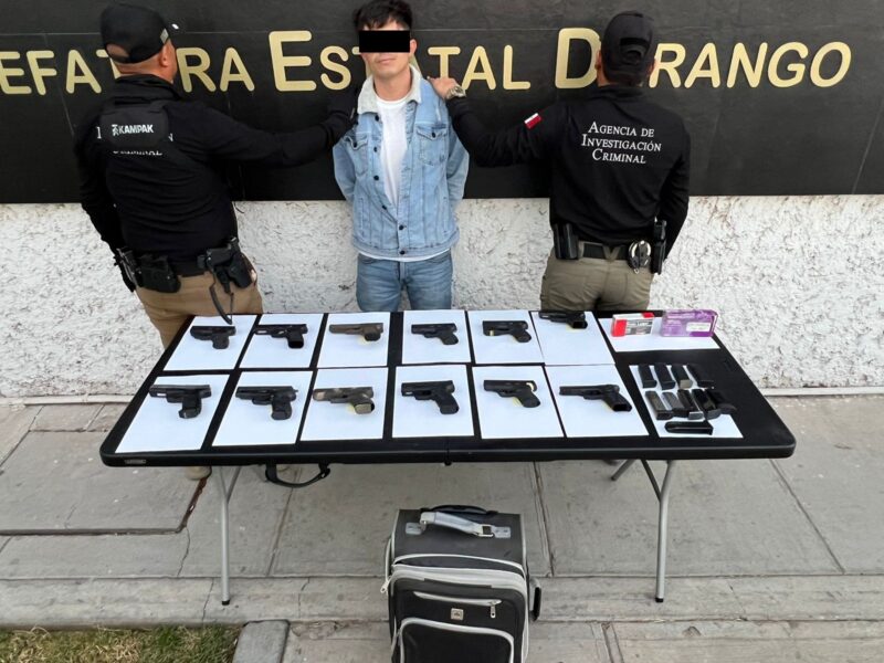 Un hombre de 35 años fue detenido en un puesto de control instalado en el kilómetro 195 de la carretera Panamericana Durango–Zacatecas, a la altura del municipio de Vicente Guerrero, tras ser sorprendido con un arma de fuego fajada en la cintura. El aseguramiento se realizó en un operativo conjunto en el que participaron elementos de la Policía Estatal, el Ejército Mexicano y la Guardia Nacional, quienes marcaron el alto a un vehículo que circulaba…