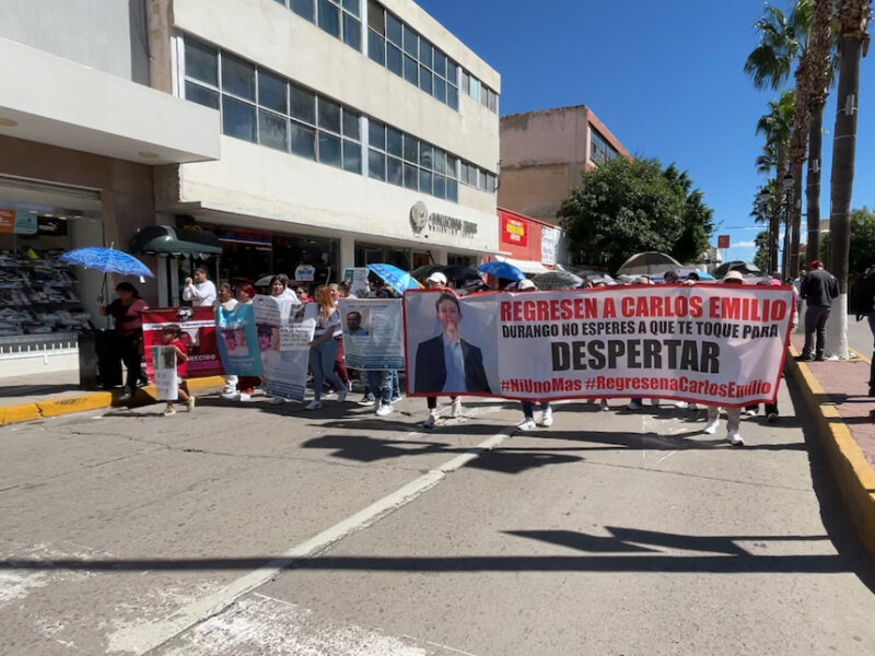 "Lanzaran Campaña de Concientización en Uso de Motocicletas; Familias Enteras las Usan: Flores"Familiares y amigos de Carlos Emilio salieron a las calles de Durango para exigir a las autoridades que lo encuentren con bien, ello al cumplirse ocho días de su desaparición en el antro Valentinos del puerto de Mazatlán, Sinaloa, donde se encontraba de vacaciones con su padre. Durante la marcha, Camila Valenzuela, mamá del joven desaparecido explicó que hoy se cumple el octavo día de la desaparición de su hijo sin que tengan ningún reporte…