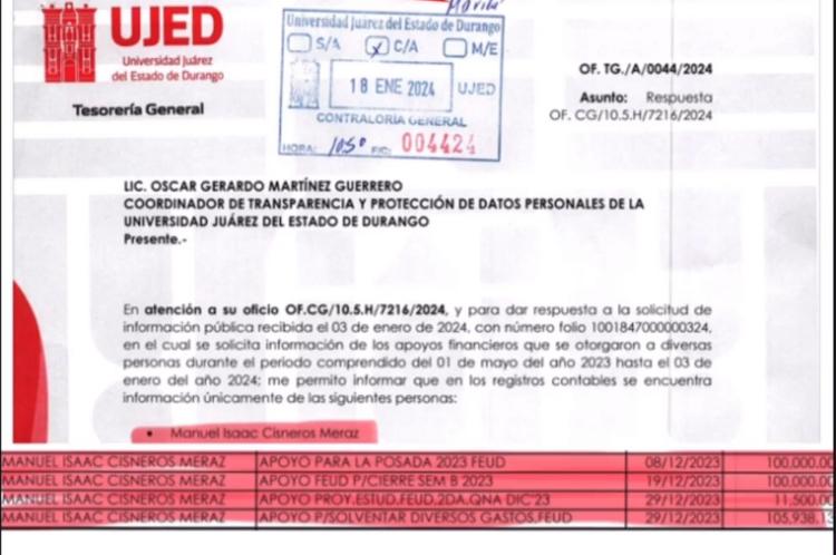 "Casi 6 Mil Descuentos Gestiona FEUD en Inscripciones"La Universidad Juarez del Estado de Durango, UJED, otorgó a la Federación Estudiantil Universitaria de Durango, Feud, en el mes de diciembre más de 300 mil pesos, según una solicitud de información. La solicitud describe que en el mes de diciembre la UJED otorgó el 8 de Diciembre del 2023 a Isaac Cisneros, presidente de la Feud un apoyo por 100 mil pesos para la realización de una posada, el 19 de diciembre se le…