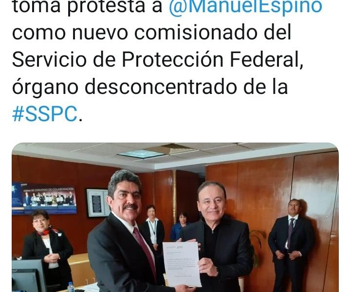 "Desaparición de Insabi Reconoce Fracaso Federal en Salud: Maturino."El duranguense y ex panista Manuel Espino Barrientos logró colocarse en un cargo en el gobierno de la 4T, ya que este día asumió el cargo como el nuevo comisionado del Servicio de Protección Federal. La designación y toma de protesta fue hecha por Alfonso Durazo, titular de la Secretaría de Seguridad y Protección Ciudadana (SSPC). Fue justamente a través de redes sociales por un tweet que publicó la dependencia, como se dio a conocer el…