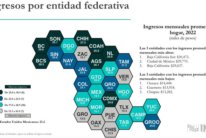 "Crece el Número de Personas Ocupadas en Durango: Inegi; Baja Desocupación"Durango se convirtió en el último estado en el norte del país en los montos de ingresos y egresos de forma mensual, según la Encuesta Nacional de Ingresos y Gastos de los Hogares 2022, que levantó Inegi. De esa manera, Durango reportó ingresos por 19 mil 100 pesos de manera mensual en sus hogares, mientras que Baja California Sur reporto 30 mil 500 pesos en ingresos, seguido por Baja California con 29 mil 600 pesos…
