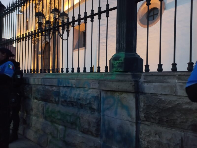 "Se Deslindan Colectivos feministas de Petardos Colocados en Barandales de Catedral."Perla Rodríguez Contreras La marcha feminista de este miércoles 8 de marzo, que albergó a miles de mujeres, dejó como saldo pintas en edificios de la Zona Centro, incluida la Catedral, la Librería de la UJED, el Arzobispado, Monte de Piedad, e incluso el pavimento y el kiosko de la Plaza de Armas, donde también se quebraron vidrios. “Los vidrios se pueden reponer, pero la cantera es más difícil, porque está regulada también para que…