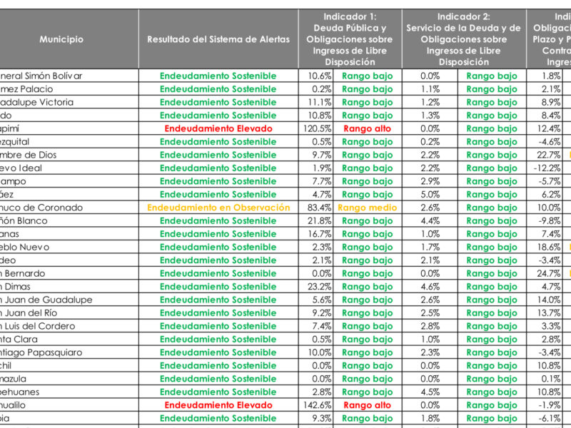 "PAN Promoverá el Presupuesto Participativo en los Cabildos Municipales"Los municipios de Mapimí y Tlahualilo se encuentran en semáforo rojo, debido al alto nivel de endeudamiento que registran, según el sistema de alerta de los municipios de la Secretaría de Hacienda y Crédito Público, al segundo semestre del 2024. De acuerdo con la legislación vigente, estos dos ayuntamientos no podrían contratar créditos, hasta en tanto no logren resolver la problemática que tienen, y que en el caso del municipio de Mapimí, tiene que ver…