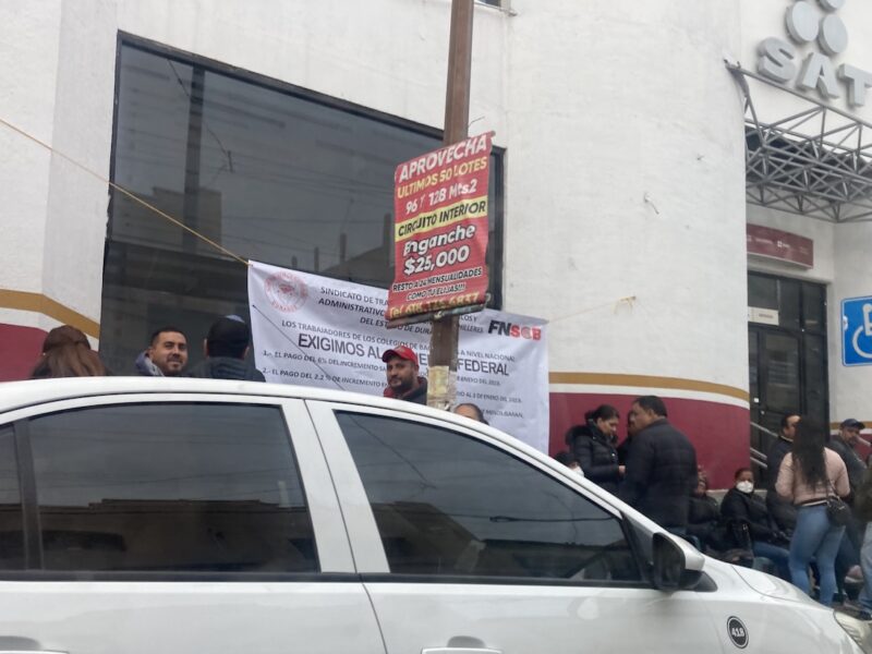 Bloquean Oficinas del SAT Profesores del Colegio de Bachilleres, Exigen Incremento Salarial del 6% y Pago de Aguinaldo