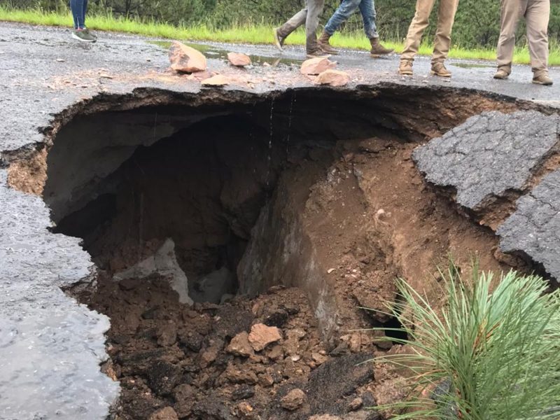 "Se Registró un Socavón de 2 Metros en el CBTA: Obras Públicas."Durante las próximas 24 horas quedará reabierta la carretera Coyote-San Miguel de Cruces, que se cerró debido a un derrumbe registrador de altura del kilómetro 70 de la vía. La Secretaría de Comunicaciones y Obras Públicas del gobierno de Durango, informó que será durante las 24 horas siguientes cuando se pueda restablecer un paso provisional en dicho punto, que sufrió un derrumbe debido al reblandecimiento por las fuertes lluvias registradas en la zona. De acuerdo…
