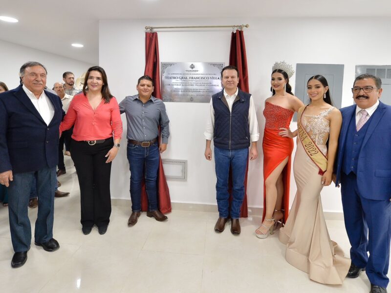 "Se Invierten 17 MDP en la Velaría del Teatro el Calvario"El teatro Francisco Villa ubicado en el municipio de San Juan del Río, demarcación en donde nació el Centauro del Norte, fue inaugurado por el Gobernador Esteban Villegas Villarreal, quien recordó haber gestionado recursos para dicha obra desde que fue diputado local. La inauguración del nuevo recinto cultural se desarrolló en el marco de los festejos de la Feria de la Nuez que se desarrolló en dicho municipio cuyo presidente municipal, Hugo Gándara visitó Durango…