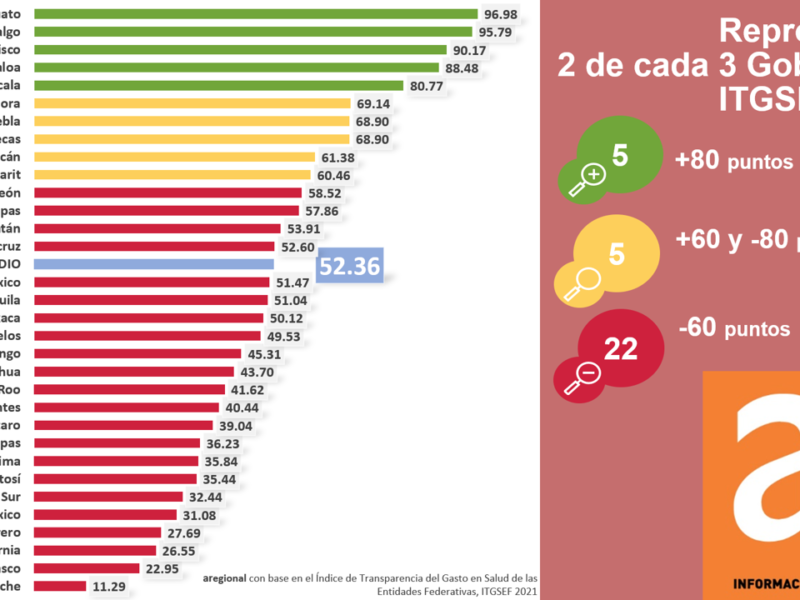 "Proponen a Candidatos Acogerse a Iniciativa 3 de 3 para Aumentar Confianza de Electores."La consultora Aregional elaboró el Índice de Transparencia de Gasto en Salud en donde únicamente nueve entidades del país aprobaron y 23 no lograron cumplir con los indicadores como fue el caso de Durango que avanzó 10 lugares pero no logró obtener una calificación positiva. El promedio general del Índice fue 52.36 por ciento de cumplimiento, mientras que Durango alcanzó un cumplimiento del 45.31 por ciento, lo que lo colocó en el lugar 18 del…