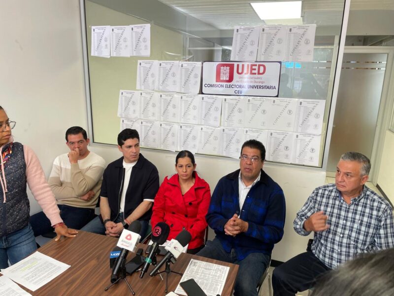 "Mier Cisneros Esperará Amparo para Participar en Elección a Rector; Señala Desconfianza en CEU"Al insistir en la falta de firmas suficientes para ajustar el 10 por ciento del padrón, para poder ser registrado como candidato a rector de la Universidad Juárez del Estado de Durango, los miembros de la Comisión Electoral Universitaria instó a la Junta Directiva a pronunciarse sobre la viabilidad del registro de Rafael Mier Cisneros. En conferencia de prensa, los integrantes reiteraron que se detectó una insuficiencia de firmas de catedráticos con vigencia de derechos…